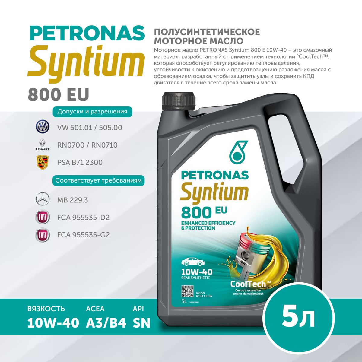 Моторное масло PETRONAS Syntium 800 E 10W-40 специально предназначено для легковых автомобилей, внедорожников и грузопассажирских автомобилей, в которых используются бензиновые двигатели с турбонаддувом и прямым впрыском, а также дизельные двигатели, такие как у Mercedes-Benz, Volkswagen и Renault (см. руководство пользователя). Оно также подходит для автомобилей, которые оснащены топливными форсунками, мультиклапанами или турбокомпрессорами для тяжелых условий эксплуатации.