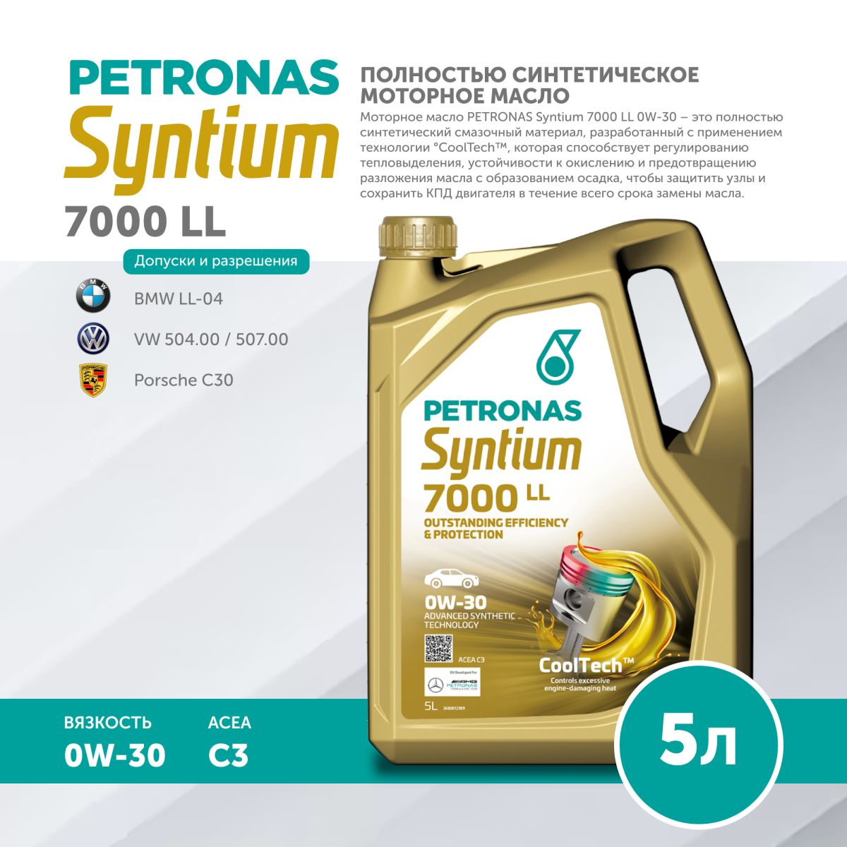 Моторное масло PETRONAS Syntium 7000 LL 0W-30 – это полностью синтетический смазочный материал, разработанный с применением технологии °CoolTech™, которая способствует эффективному регулированию тепловыделения, устойчивости к окислению и предотвращению разложения масла с образованием осадка, чтобы защитить узлы и сохранить КПД двигателя в течение всего срока замены масла.